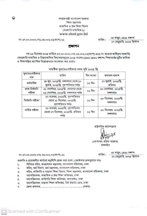সামষ্টিক মূল্যায়ন/অর্ধবার্ষিক পরীক্ষার সময়সূচি